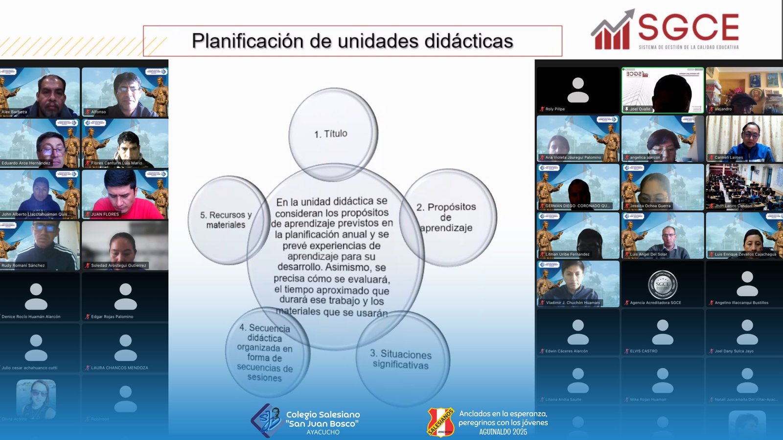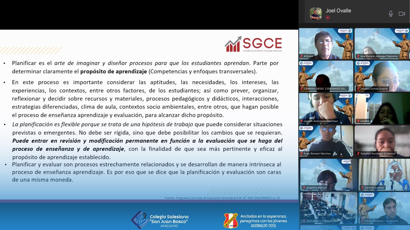 Hoy en horas de la mañana, nuestros educadores del 𝐂𝐨𝐥𝐞𝐠𝐢𝐨 𝐒𝐚𝐥𝐞𝐬𝐢𝐚𝐧𝐨 “𝐒𝐚𝐧 𝐉𝐮𝐚𝐧 𝐁𝐨𝐬𝐜𝐨” 𝐝𝐞 𝐀𝐲𝐚𝐜𝐮𝐜𝐡𝐨 𝐲 𝐝𝐞𝐥 𝐂𝐨𝐥𝐞𝐠𝐢𝐨 𝐒𝐚𝐥𝐞𝐬𝐢𝐚𝐧𝐨 𝐝𝐞 𝐀𝐫𝐞𝐪𝐮𝐢𝐩𝐚 participaron en un valioso curso virtual organizado por el 𝐒𝐆𝐂𝐄 (𝐒𝐢𝐬𝐭𝐞𝐦𝐚 𝐝𝐞 𝐆𝐞𝐬𝐭𝐢ó𝐧 𝐝𝐞 𝐥𝐚 𝐂𝐚𝐥𝐢𝐝𝐚𝐝 𝐄𝐝𝐮𝐜𝐚𝐭𝐢𝐯𝐚), con el propósito de fortalecer sus competencias pedagógicas.