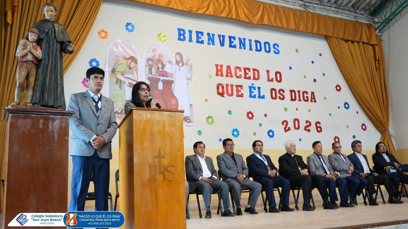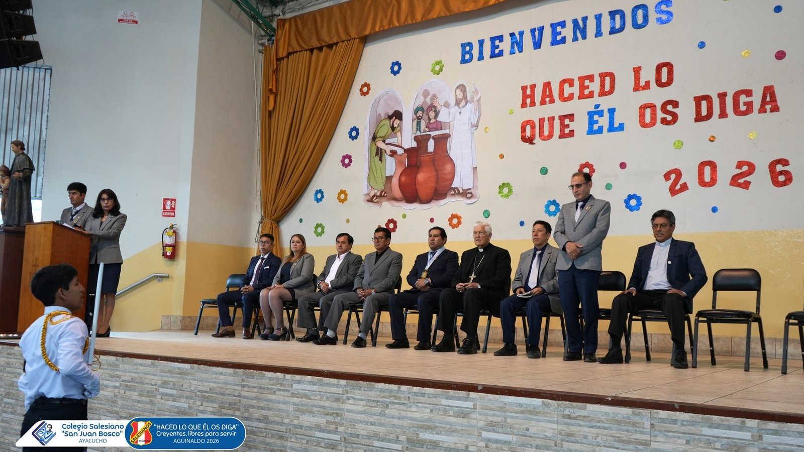 Agradecemos la distinguida presencia de Monseรฑor Salvador Piรฑeiro, Obispo de Ayacucho, del Alcalde de Huamanga y del representante de la UGEL Huamanga, quienes compartieron con nosotros este importante momento para nuestra comunidad educativa.