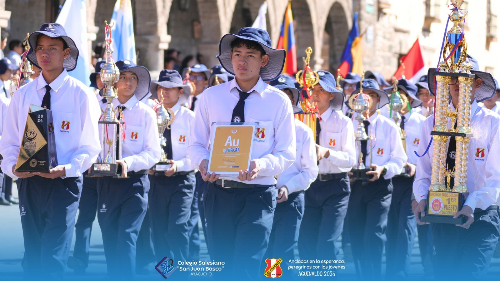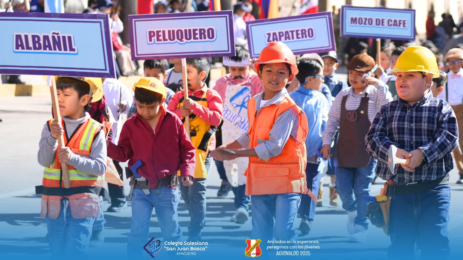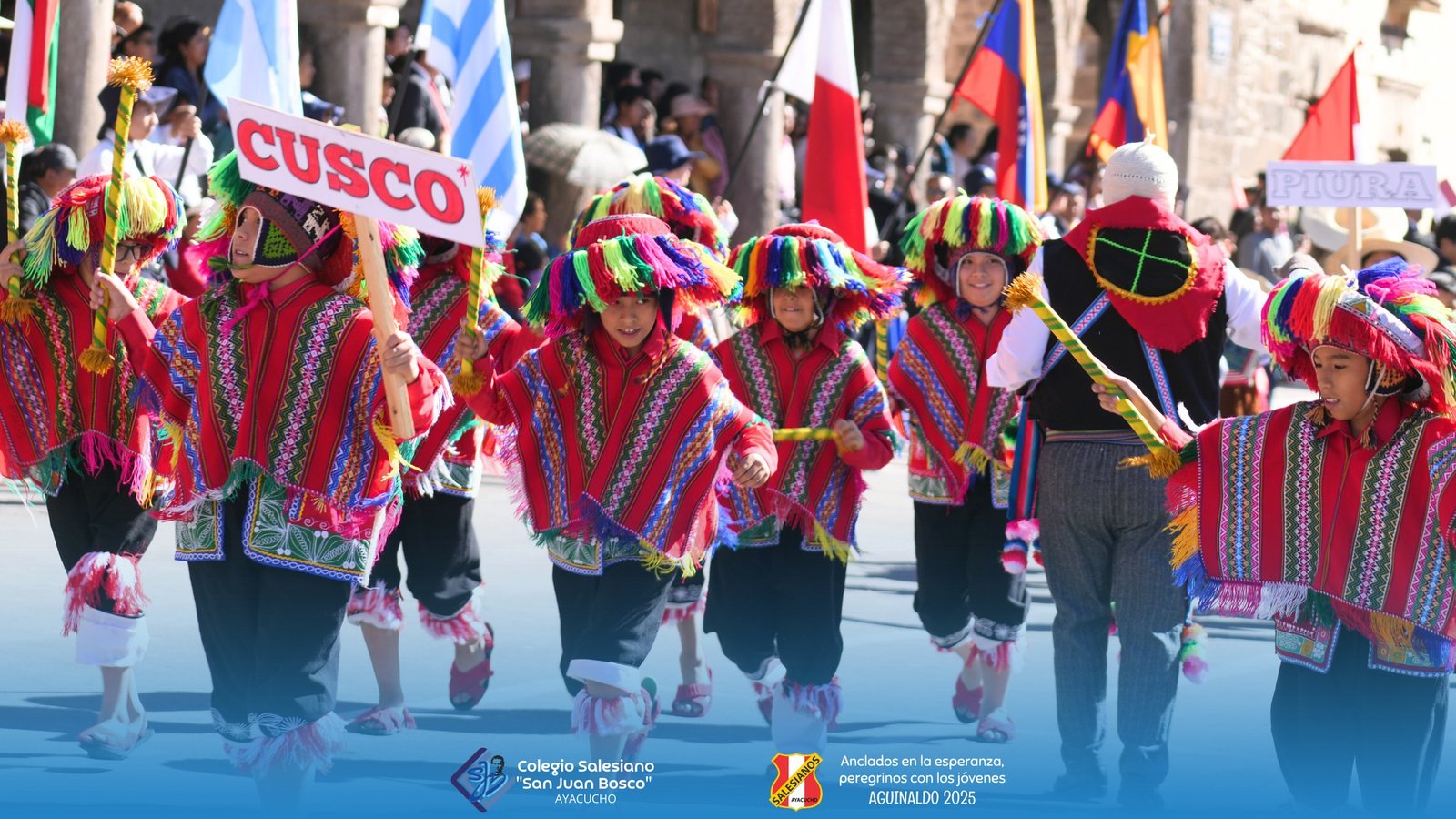 Niรฑos, jรณvenes, padres de familia, educadores, exalumnos, oratorianos y miembros de los distintos grupos de la obra salesiana marcharon por la plaza mayor de Huamanga con cantos, pancartas, imรกgenes y expresiones de fe, mostrando el amor y la gratitud que caracteriza a la devociรณn mariana en el corazรณn salesiano.