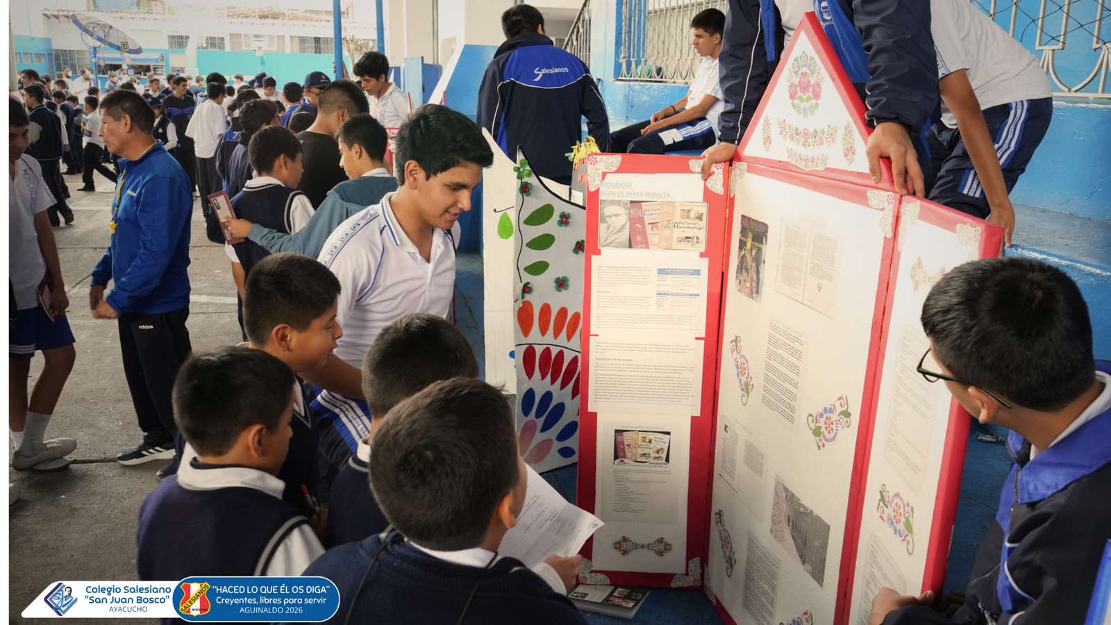 En el marco de la conmemoración del Día del Idioma Español y el Día del Libro, la comunidad educativa del Colegio Salesiano San Juan Bosco de Ayacucho vivió una significativa jornada orientada a revalorar la riqueza de nuestra lengua y el hábito de la lectura como pilares fundamentales en la formación integral de los estudiantes.