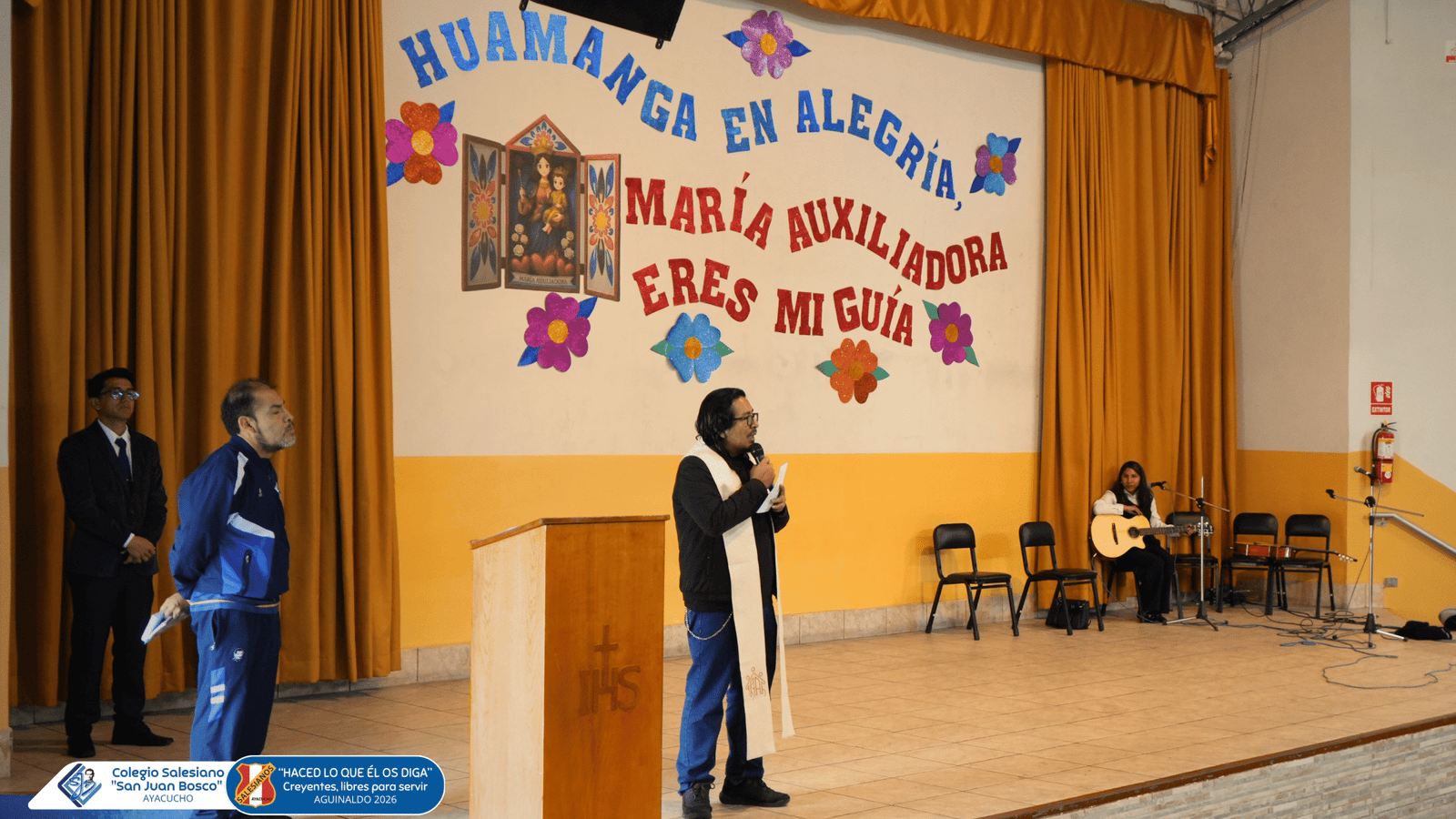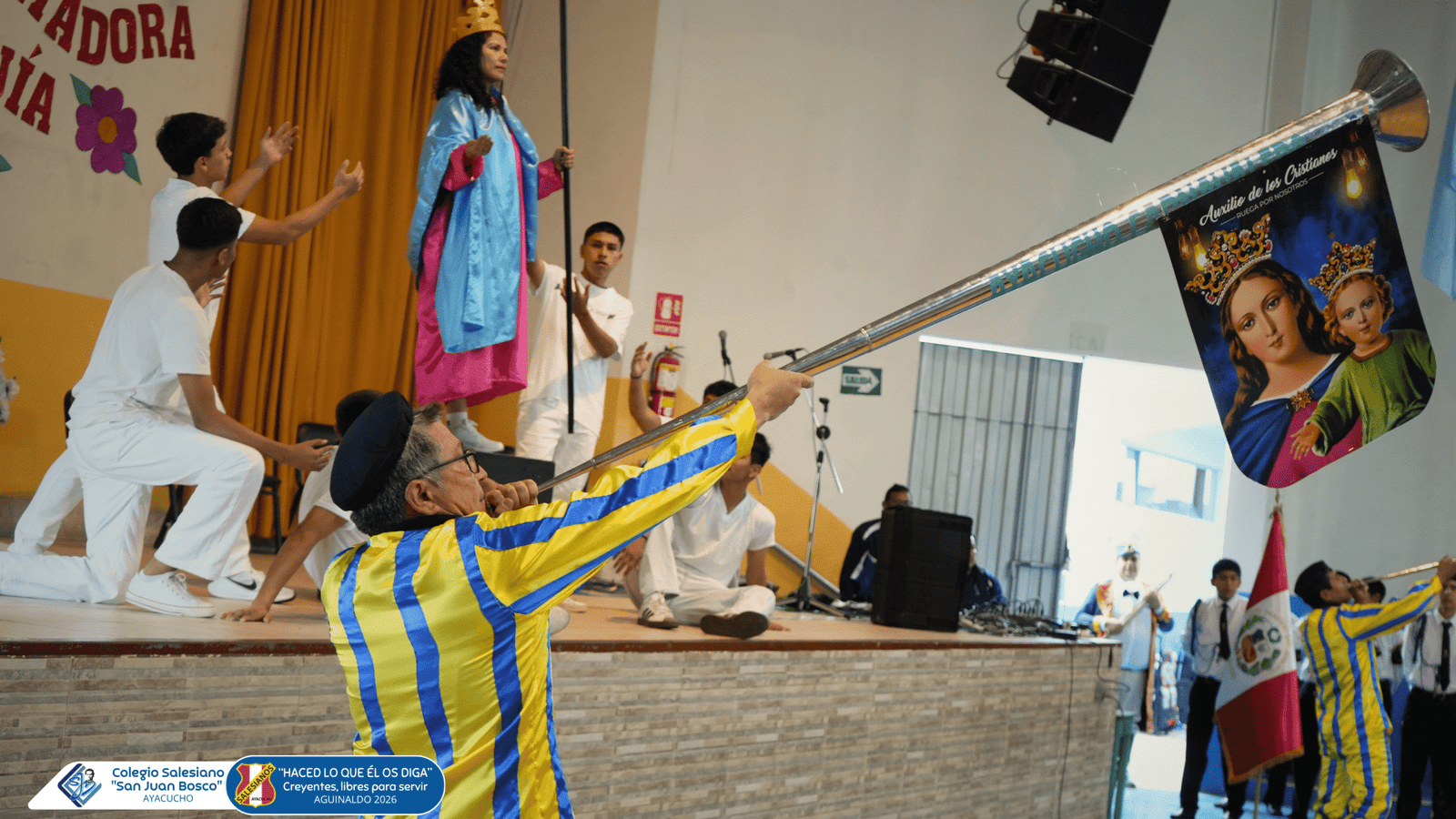 Este 24 de abril, la comunidad educativa del Colegio Salesiano San Juan Bosco de Ayacucho dio inicio al Mes Mariano con un significativo Pregón Mariano, vivido en un ambiente de recogimiento, fe y espíritu de familia. Estudiantes, docentes y personal se unieron para honrar a María Auxiliadora, fortaleciendo su devoción y compromiso cristiano.