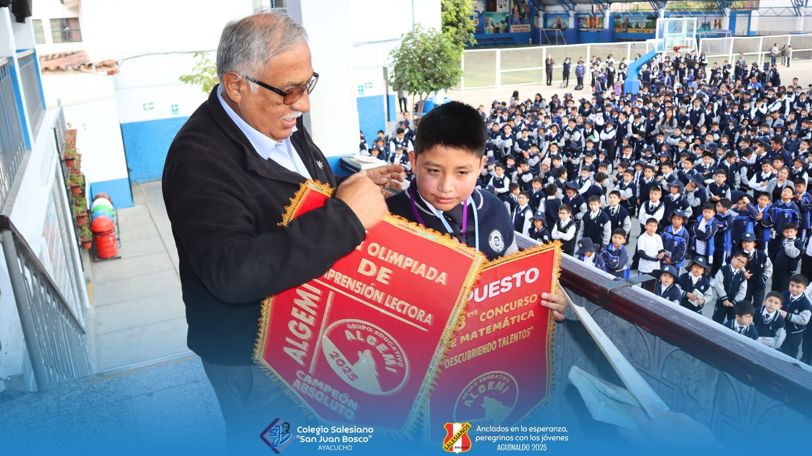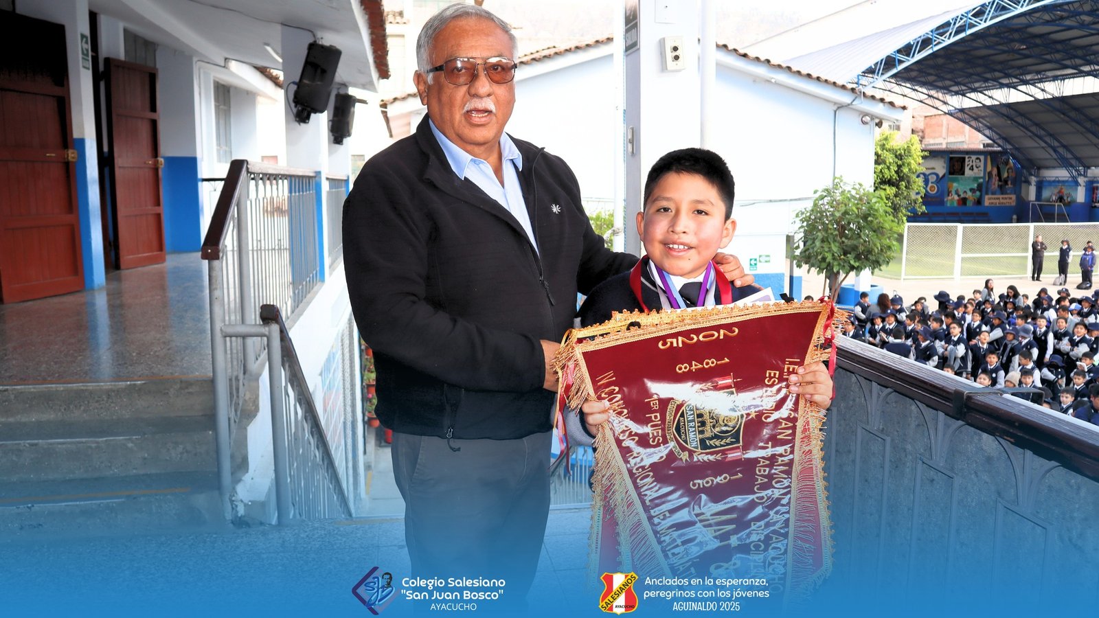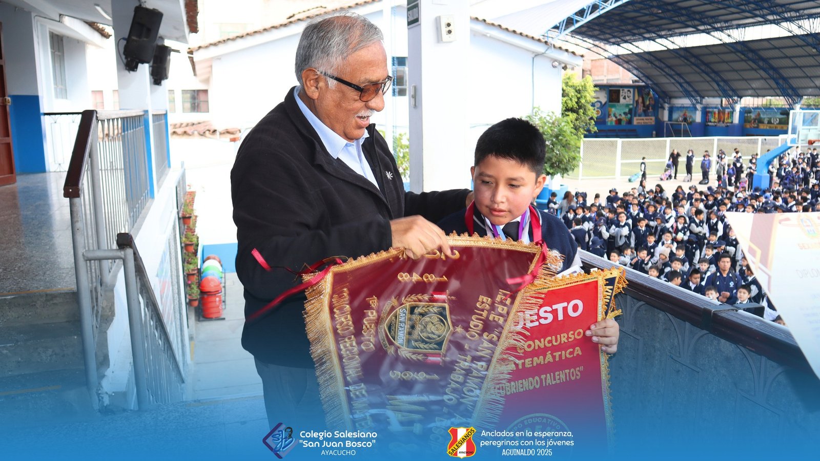El estudiante 𝑱𝒂𝒈𝒈𝒆𝒓 𝑨𝒅𝒓𝒊𝒆𝒍 𝑺𝒂𝒍𝒗𝒂𝒕𝒊𝒆𝒓𝒓𝒂 𝑨𝒓𝒄𝒆, del cuarto grado de primaria, recibió el Diploma de Honor por haber alcanzado el Primer Puesto en los diferentes concursos realizados en nuestra ciudad.